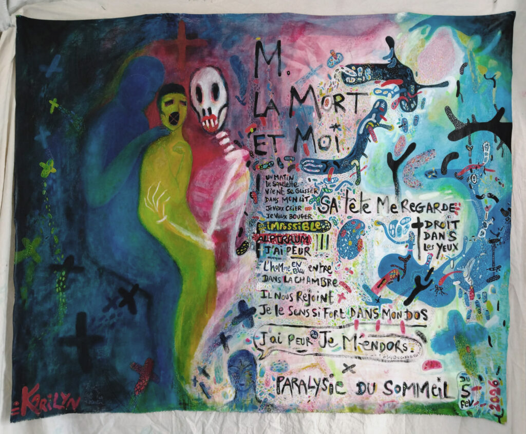Voici le 1er : M, la Mort et Moi (paralysie du sommeil) – 120×149 cm.